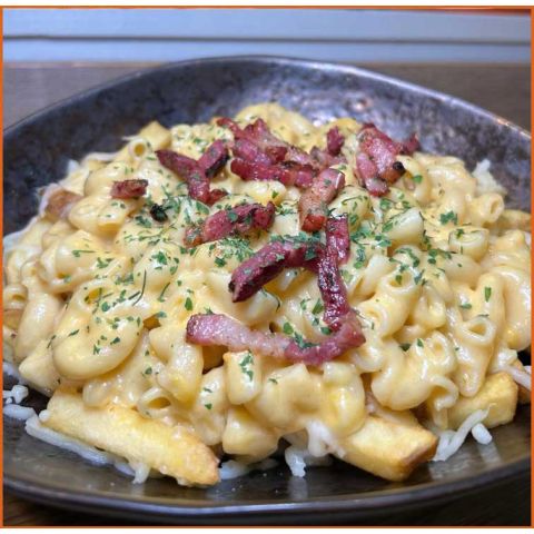 Mac & Cheese FriesHomemade Mac & Cheese & Bacon Bits -
