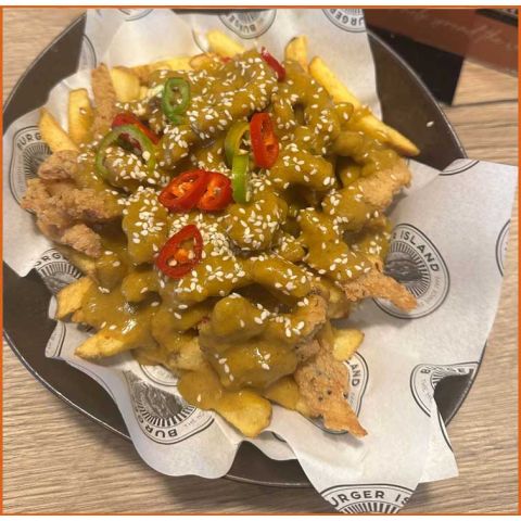 Chilli FriesHouse Chilli, Mozzarella, Jalapenos & Cheese Sauce -