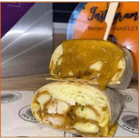 Cheeseburger WrapBeef Patty, Chips, Mozzarella, Lettuce, Tomato, Onion, Pickles & Island Sauce