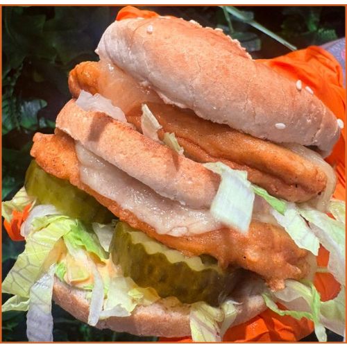 Chicken Big StackDouble Cut Buns, 2 Chicken Steaks, Cheese, Lettuce, Pickles & Burger Sauce