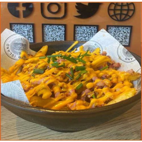 Mozzarella, Bacon, Cheese Sauce, Crispy Onion, Sour Cream