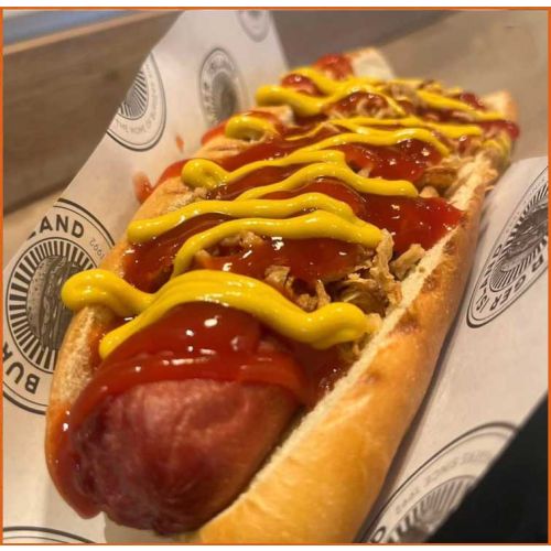 Original DogGerman Hot Dog, Crispy Onions, Ketchup & Mustard -